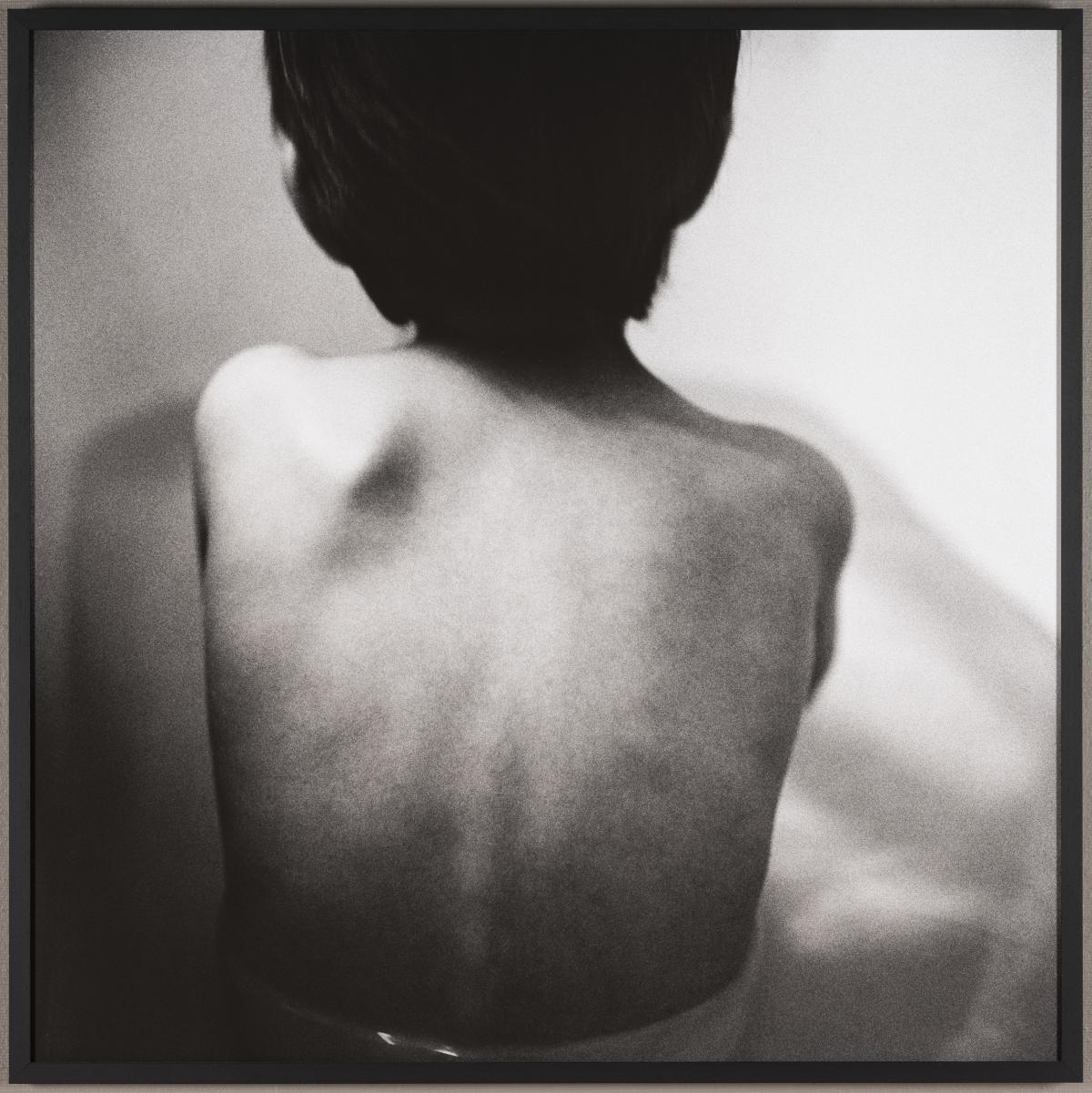 The photographs *Self-Portrait*, *Max*, *Hands and Marbles* and *Pterodactyl* form part of the same series, published by Caillou Bleu under the title *L’amoureuse*. Anne De Gelas began this series following the death of her partner, the father of her son. She sees this work as a necessary therapeutic process to help her overcome her grief. Self-portraits quickly emerged as a way for her to fill the void left by the absence of her loved one’s gaze upon her. How does one cope with emptiness and grief? From this ordeal also arose a new dynamic with her son, oscillating between closeness and confrontation. The photograph ‘Max de dos’ is taken from the book ‘Mère et fils’, a sequel to ‘L’amoureuse’. In Anne De Gelas’s work, the shots are intimate and unadorned. The framing is tight, and backgrounds are almost always eliminated. They explore the theme of solitude.