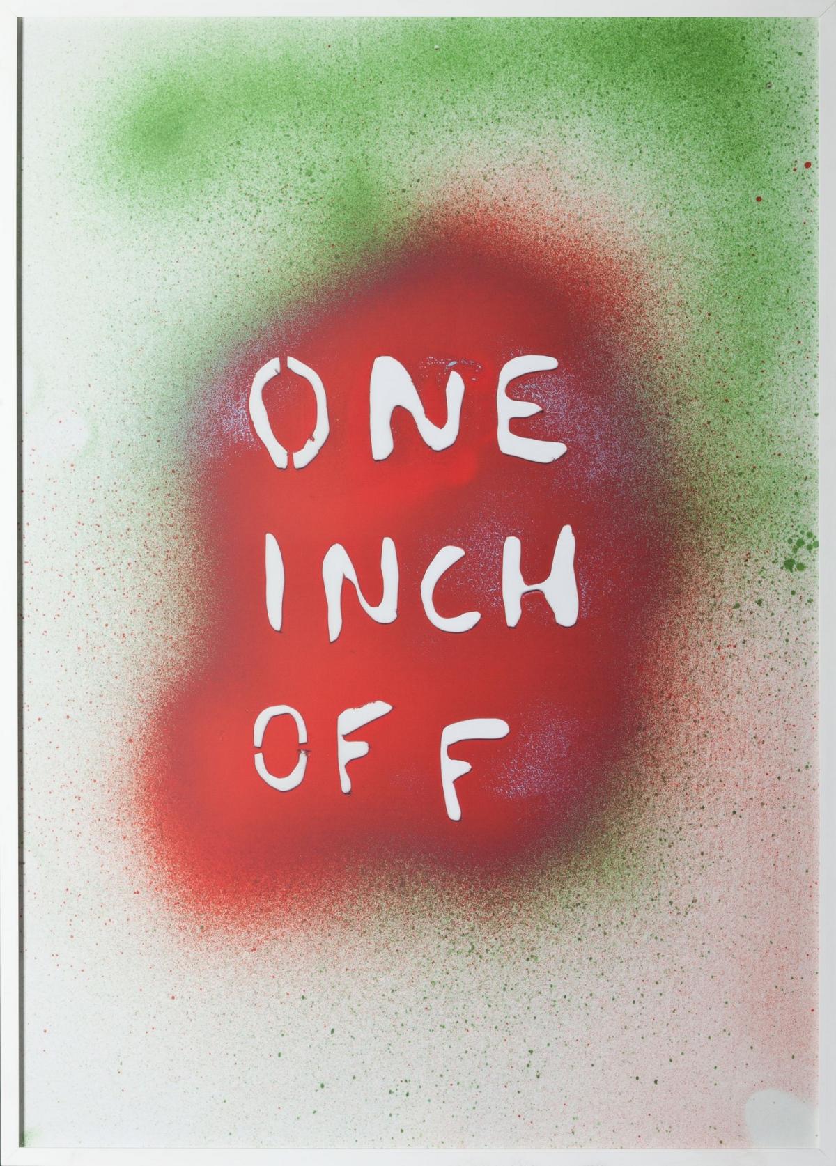 The words ‘One Inch Off’ refer to the title of the series of fanzines produced by Benoît Platéus between 2004 and 2007. Though merely modest printed sheets, these small objects nevertheless embody a kind of distillation of the artist’s work, bringing together many of his favourite ideas and techniques. Coming from the world of comic books, Platéus quickly broadened his horizons to explore the infinite possibilities of image transformation. Page Zéro presents a reproduction of a stencil the artist used to print his fanzine. He ultimately considered the object itself more interesting than the result it was meant to produce. Platéus compares the approach to a sort of ‘reverse graffiti or negative’. The artist frequently recycles objects, newspapers, magazines, books and posters, subjecting them to various experiments and manipulations. Furthermore, questions of scale regularly feature in his practice. Here, the stencil has been enlarged, whilst the title of the fanzine refers to an American paper size that is approximately ‘one inch smaller’ (‘One Inch Off’) than the European format.