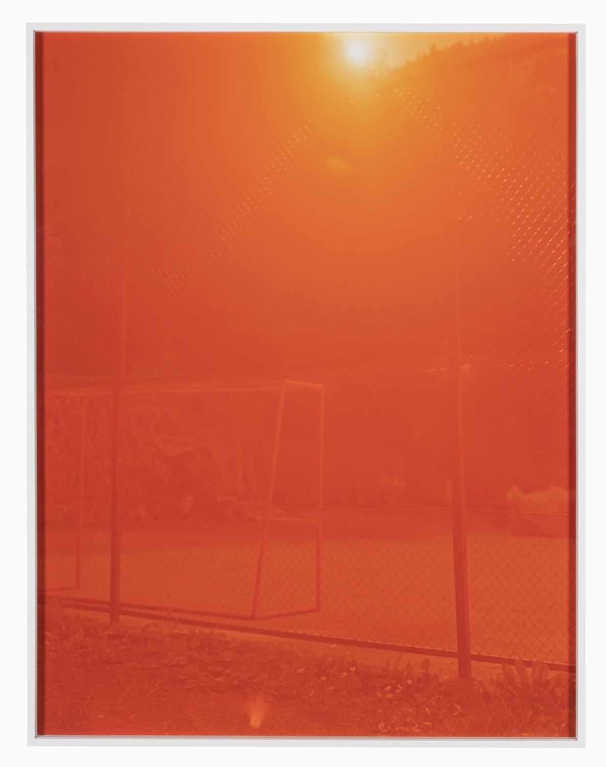 R_4 (orange) is part of the ‘Mono’ series which, although it consists mainly of black-and-white prints, marks the beginning of Michel Mazzoni’s experiments with colour. The title refers very literally to the context in which the work was created: ‘R’ for Romania, where the photograph was taken, and ‘4’ for its chronological position within the series. In this body of work, the artist explores the notion of monochrome, visual density and the degree of abstraction that this can induce. Whilst patterns may seem discernible, the orange colour and diffused light immerse the image in a surreal atmosphere. Mazzoni plays with the components of the image as well as the photographic process itself. The cinema of Antonioni or Marker, just like early photographic experiments, are among his sources of inspiration. The artist sometimes intervenes directly on the films, as is the case with R_4 (orange), for which he pre-veiled and scanned the negative. The concept of the fragment is important to Mazzoni, who considers his photographs to serve as traces, visual testimonies of his wanderings.