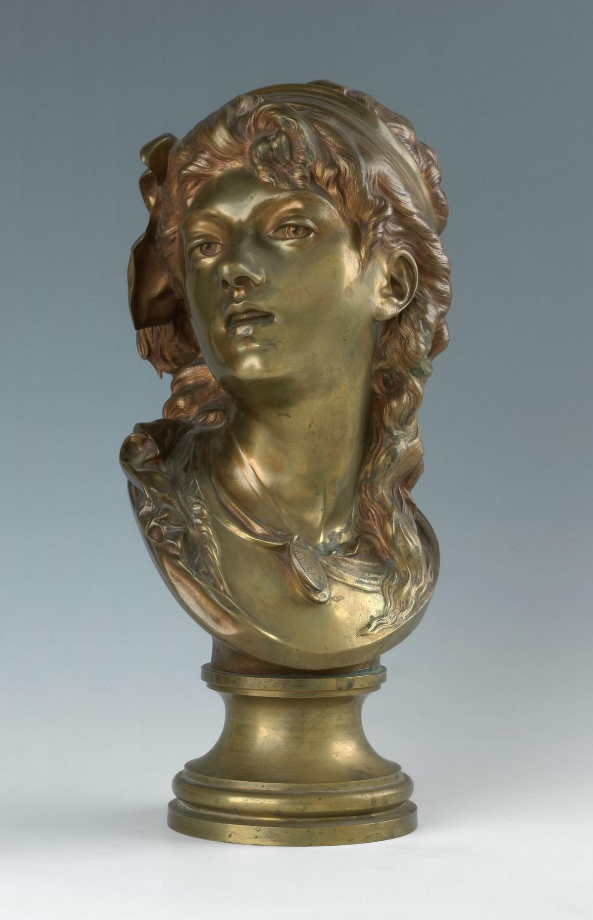 Auguste Rodin lived in Brussels between 1871 and 1877. From 1871 onwards, Rodin worked on sculptures commissioned by the City of Brussels in collaboration with his mentor, Carrier-Belleuse. He produced numerous sculptures intended to decorate bourgeois interiors, in an 18th-century and bucolic style. In 1875, Rodin signed a contract with the Compagnie des Bronzes de Bruxelles to produce the bust of Suzon in various materials and sizes. Suzon draws inspiration from the graceful portraits of young women from the 18th century. Her features are delicate and her face perfectly reflects the bucolic theme. This work combines grace and strength, but it does not yet express the vitality and creative fertility that Rodin would later develop.