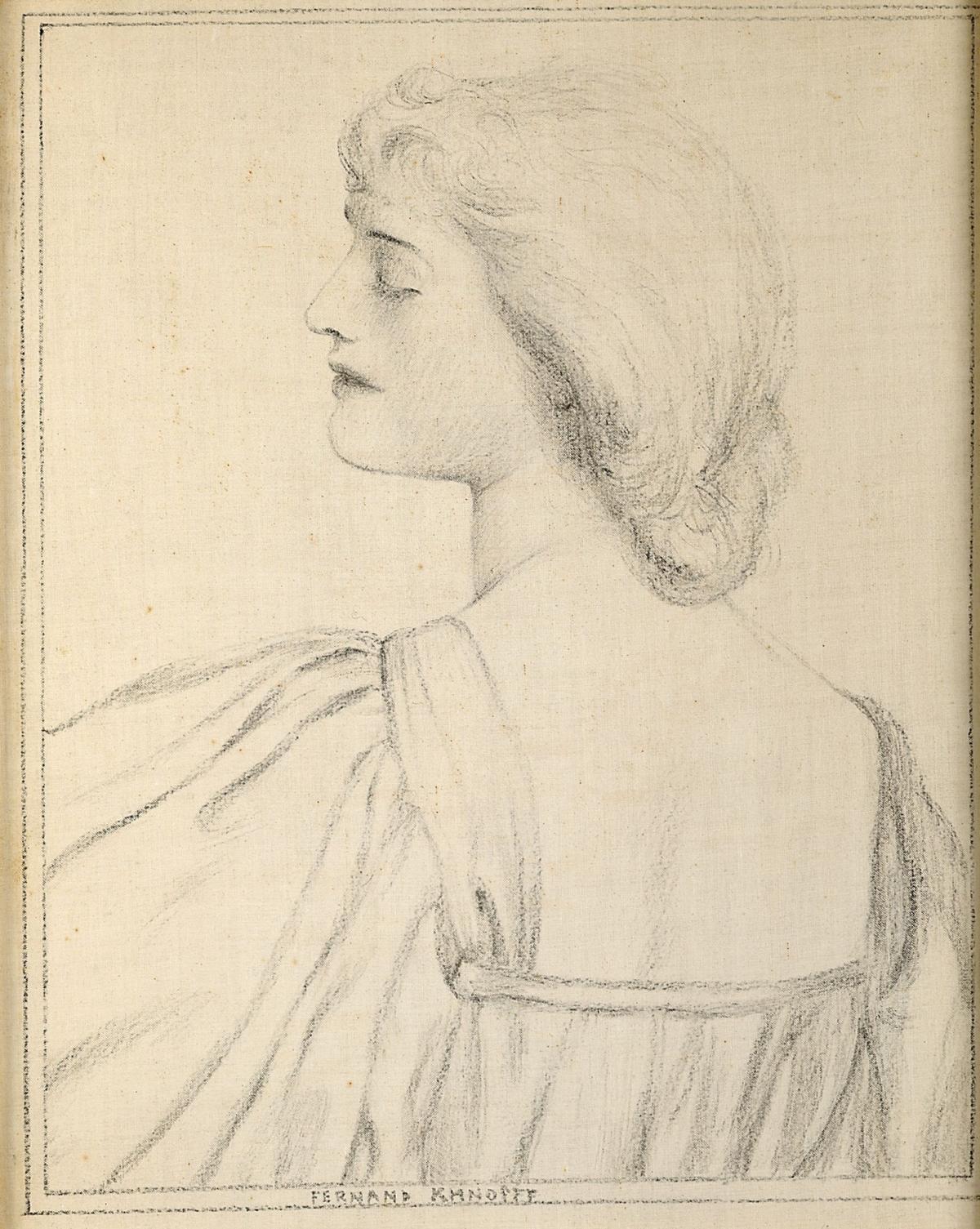 Fernand Khnopff’s favourite subject remains the woman, with her vacant gaze and petrified demeanour, often modelled on the artist’s own sister. Here, this woman, depicted from behind, reveals her face in profile. Her closed eyes add a touch of mystery. Born into the upper middle class, Khnopff attended the Academy of Fine Arts in Brussels, where James Ensor was a fellow student. He was captivated by the Symbolist and Pre-Raphaelite movements, which were in vogue at the end of the 19th century. Whilst Khnopff’s work is enigmatic, it nevertheless reveals great finesse in the treatment of his subjects.
